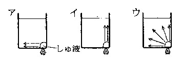 に、スポイ トでしゅ液(習字などで使う)をしずめて下から温めたとき、しゅ液はのように広がる。