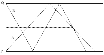 復します。出発してからAとBが2回すれ違った後、P,Qのまん中の地点で、はじめてBがAを追いこしました。