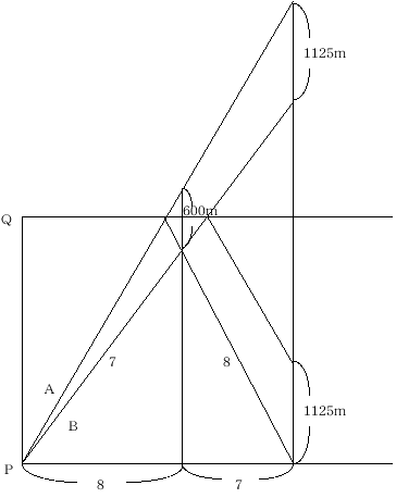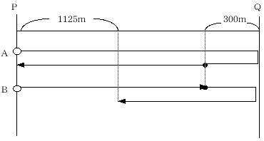 さんはP地に向かってP地から 1125mはなれた所を歩いていました。AさんとBさんの速さの比を求めなさい。