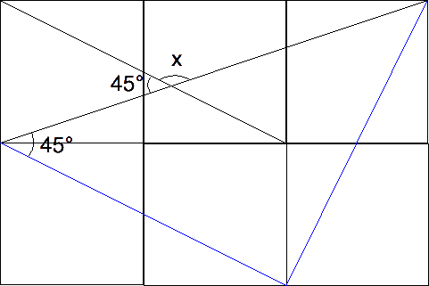 このように、直角二等辺三角形ができ、180°−45°=135° です。正 方形2個×3個です!しっかりと覚えましょう。