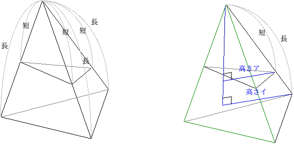 みどりの三角形を底面と考え、