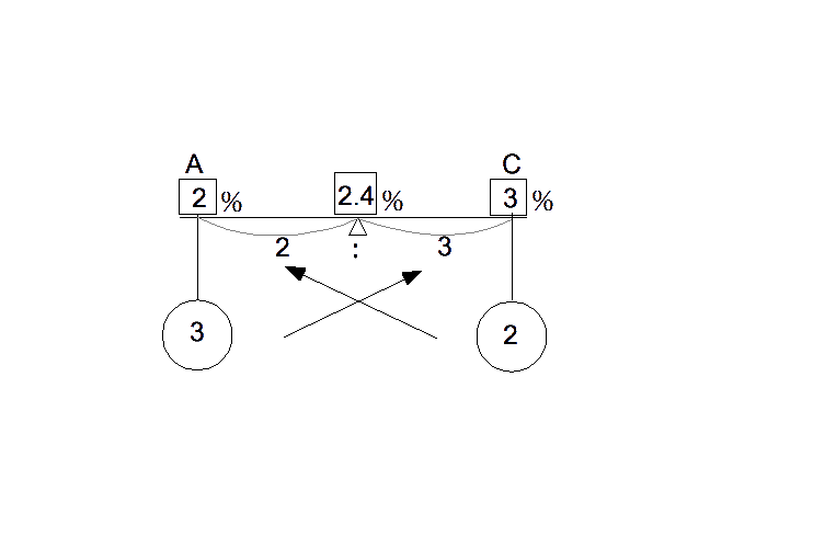 C−Dより、A−B=B−A−A すなわち、A×3=B×2よってA:B=2:3