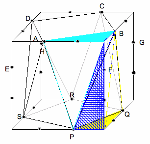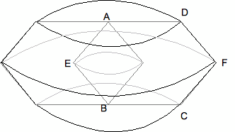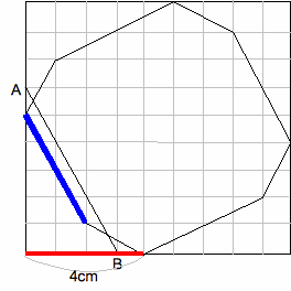 切り口の青い線が対応している。AB: 青い線=3:2となっている。また、赤い線 どうしが対応している。