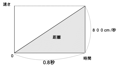 表より、垂直方向では0.8秒で800cm/秒の速さになるので、0.8秒×800cm /秒÷2=320cm