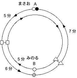 まさお君の□ー△間の時間がわからないが、みのる君の□ー△間の時間と同じなので、まさお君の同区間の所要時間5+7=12分から計算できる。